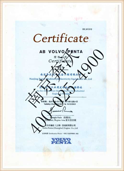 集團(tuán)公司自成立以來(lái),先后被法國(guó)西電、三菱重工、康明斯、MTU、強(qiáng)鹿等著名發(fā)動(dòng)機(jī)及柴油發(fā)電機(jī)組企業(yè)授權(quán)為指定售后服務(wù)供應(yīng)商,2010年又被沃爾沃遍達(dá)(VOLVO PENTA)授權(quán)為指定的發(fā)動(dòng)機(jī)配件及售后服務(wù)代理商,全面負(fù)責(zé)區(qū)域的沃爾沃遍達(dá)(VOLVO PENTA)發(fā)動(dòng)機(jī)銷售及質(zhì)保維修服務(wù)、零配件供應(yīng)等工作。